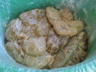倒れたフエンス 殆ど根元から折れてる(´Д`) フエンスを設置した理由は 道沿いなので、勝手にベリーを採られたり 台風の風除けの為 倒れては意味も無い そんな訳で雨が降る前に 撤去をする事に決定(・´з`・) フェンスを撤去したら 明るくて、広くて、草が目立つ(T.T) たった1枚の防鳥網は安心感も有ったけど 今は 捕られる物も無い 来年の春まではオープンにします(゚∀゚) 粕漬けの味見 さっぱりで上品な味ですが 瓜は粕の香りがいつもより感じる 好みは色々 塩気が少なくて、何個も食べちゃいます 2018年9月6日