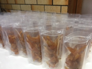 あれだけの鬼ゆずを午前中に 処理できた(゚Д゚) (゚Д゚) もう、意地です! 頑張り過ぎて 右の肩と腕が上がりづらいな(泣) 朝から、北風が吹く 橙ピールが気持ち良い位、乾いたよ 袋詰めをして、シールをして ラベルを貼って商品になります(^ω^) 切干大根もピールも やっぱり風は大事ですわ!
