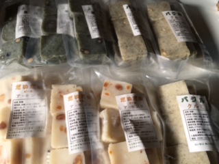 本日、ぎゅうとら「おおきんな」納品日 無花果の甘露煮も少しですが 納品しました。 季節柄、お餅が多く並らんでるが 今日も夏日 お餅を焼いて食べる気分じゃないですね 今月末には家も餅つきの準備をする予定で 問屋さんに餅米を予約したのに 未だに連絡が来ません 夏の長雨で 餅米が無いのかしら? 心配です(゚Д゚) 先日 洋服のお客さまから頂いた餅米30キロ 「餅米使って下さい」と家まで 届けて下さった 我が家にも昨年の残り20キロと 頂いた30キロを入れると 暫くは安心です 産直の冷蔵庫にお餅がどっさり! 寒くなる前から超競争率です でも、きりんのお餅は 誰も真似が出来ないので安心です バジルとくるみ 橙ピールとアーモンド よもぎと黒豆 ある意味 お餅の個性が強すぎるけど・・ (´Д`) 2021年10月10日