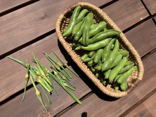 展示会の什器を和室に詰め込んだまま 片付ける暇もない、 叔母から畑に呼び出しが・・・ 枝豆が伸びすぎて、 強風で倒れそうなので ビニール袋を被せに畑 お隣の畑のおっちゃん 「そら豆を早よう食べやんと固くなるよ!」 私 「えっ!、まだ、上を向いてこんけど?」 おっちゃん 「何、言うとん( ・ω・) ・・下を向いたら 食べるんや!」 あれっ!あれっ! もしかして、私、間違ってたの? 言われるままに収穫(笑) ![]() こんなに大量のそら豆と ニンニクの芽 さて、何の料理を作ろうか? ![]() 先日、知人に頂いた紀北町の「なまぶし」 そら豆は 塩とバター、鶏がらスープで味付け そら豆ペーストにしました〜 残ったから、スープにして食べてみよう 午後からジャムの炊き込み ![]() 毎度ながら、ジャムを炊くのは大仕事 たかが、ジャム されど、ジャム 収穫の季節、果物が持つ甘み、苦味など その時々で大きく変わる 思っているより、大変な仕事です。 2023年5月1日