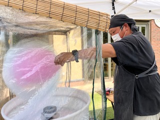 手作りSHOPに納品して ついでに、松阪農業公園「ベルファーム」に バジルペーストを大量に納品 ![]() 知人の山ちゃんが開催する 「クラフト&雑貨マルシェ」 10時前なのに、満車状態 産直指定の駐車場に停め 納品後、マルシェで自分の服を購入(゚Д゚) ![]() ブラブラと歩いていると あれっ!・・・友人の藁やさん 綿菓子、実演販売中 腕が上がって、ハート型だ〜(゚Д゚) 忙しそうなので、暫くお話をして退散 ![]() バラ園、開催中らしいので 園内を1人で歩く 人の多さに酔い加減で、頭がクラクラする 家に帰ったら 疲れて、ソファーで昼寝 いや〜GWに出るもんじゃない! 家が一番、安らぐわ〜 2023年5月3日