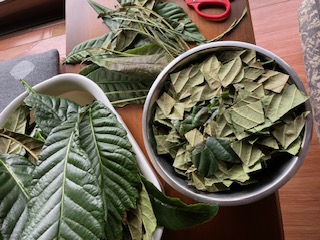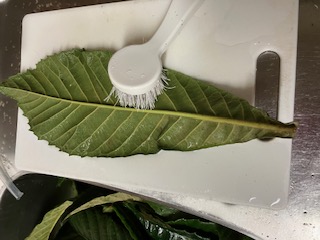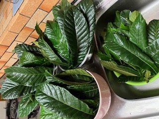先日、ベルファームに納品に行った時 友人の藁やさんに ”びわエキスを作りたいので葉っぱ有る?”と たずねた所 「一杯あるから友達の F くんに預けるわ」 あくる日、大きなゴミ袋に入れた葉っぱを F 君が届けてくれました! ![]() 1;肉厚と若葉を分けて、綺麗に洗う ![]() 2;葉っぱの裏の産毛をブラシで しっかりと洗う びわエキスに使うのは、固めで濃い色を 使うと良いらしい ![]() 3;一日、乾燥してからカット ![]() 4;焼酎1・8リットル、枇杷の葉150g 5;焼酎の瓶を消毒する 6;カットした葉っぱを焼酎でもむ 7;焼酎を入れ、密封して、暗室保存 エキスが出来るのは、最低でも2ヶ月 じっくり待つ事にしよう 葉っぱの分量が多すぎたので 残りの葉っぱを 2日、乾燥させて、枇杷茶にする。 枇杷の効能 色々と有るけど、使ってみる価値がある。 雨の中 玉城「ふるさと味工房アグリ」 先日納めたバジルペーストの 在庫が無くなったので急遽、納品をする さすが、ゴールデン 商品がなくなるのが早い! (゚Д゚) 2023年5月6日