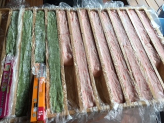 イベントに持って行く予定のフィナンシェ 何でかは分からないけど、失敗した 喉の奥で苦味を感じる 自分の舌が悪いのか、よく分からない! 気になる物は売らないので 全部、破棄をする (゚Д゚) 玉子10個とバターが無駄になる! 搗いた餅の乾きが意外と遅い・・? 乾かないと餅が柔らかくて 餅切り器を使えない 昨日の夜、遅くから今日の朝までに カットをしたら、腕を使いすぎて 右肩が上がらなくなった 二階の部屋に1枚 和室に2枚の網戸を使って干す 足の置き場も無い ![]() 和室がほんわか、餅の香りがする 後、30キロ搗かないと・・ 問題は、どこに干す? おかきは寒い時期に作るのが 一番美味しい! 結構、重労働で大変ですわ。 明日は伊勢河崎「だいどこ市」 暖かくして参加です。 2023年1月20日