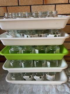 朝から津波の情報を防災無線で知る 丁度、バジルペーストを作ってる最中で 何の予告も無く、突然の事で 正直、驚いた その後の情報で伊勢は大丈夫らしい! ![]() 在庫の瓶が無くなったので発注し、届く 早速、朝からペーストの製造 ![]() 畑ではバジルが一杯採れるのに 肝心な冷凍庫がいっぱいで収穫が出来ない! 収穫して、葉っぱだけ産直に出すか 抜いてしまうか?悩み中です 玉城ふるさと味工房アグリさんが 「何時でも出して下さい」って言うけど 持って行くのも大変だし・・・ ![]() 夕方は、茄子とピーマンの日陰をやり直し 遮光ネットと結束バンドを使い 水をあげやすくする 追肥も忘れずに。 ![]() 黒のカンレンシャを掛けた小松菜 水が切れる事も無く、発芽 半日陰で育てる方が失敗なさそうだ! 2025年7月29日