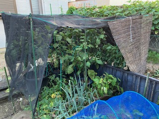 毎日、朝晩の水やりをして 野菜を収穫してるのに 採り忘れるって、どうなんやろ? ![]() 小さく見える右側のきゅうりはLサイズ それより、もっと大きいのがLLLL? 大きな葉っぱに隠れて、採り忘れた きゅうりの棚を作る資材が、きゅうりの イボイボと同じ色で、同じ太さ 目を凝らしても、何度も採りわすれる 枯れ草と一緒に捨てるしか無い! ![]() つる無しインゲンとべんり菜の芽が出たと 思ったら、ぐんぐん伸びる スダレの効果、随分と有る様です 酷暑に葉物野菜を育てるには過保護しかない ![]() これだけ暑いと蕎麦が食べたい! やまと茶屋 「サーモン、ねぎトロ丼と冷やしそば」 美味しゅうございました。 2025年7月30日