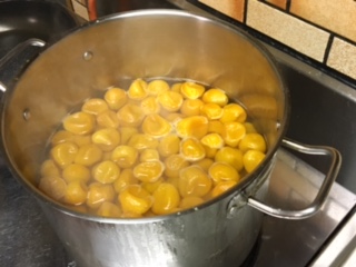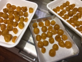 ダンボールにいっぱいのキウイを 頂いた友人にキウイチョコピールを届ける スマホに 「ちょちょちょっとぉ〜メッチャ美味しい! ハマるね!」とメッセージ 頂いたキウイを、セミドライにして ホワイトチョコをコーティングしただけ(゚Д゚) 手頃な固さがポイントですが 酸味とチョコの相性はバッチリ 今日、アグリに納品したのも 直ぐに売れちゃいそうです 旬の果物を旬に食べられるように 試行錯誤をしながら 新作を考えて行く楽しみや感動がある。 ![]() 山田工作所で叔母達と拾った銀杏 ゴム手袋をはいて モミモミしながら種を取る 思ったより多くて、 殻取りに2時間もかかり苦戦する(´Д`) ![]() そこまでして食べたいのか? 人は言うけど 苦労した分、美味しく食べなきゃ 1粒たべてみる 塩がきいて、美味しいなぁ〜 使い道はなんぼでも有る イヤ〜・・頑張ったわ!
