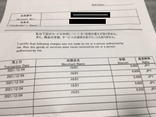 クレジットカードが使われた(´Д`)