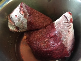 暫く雨続きの予報です 曇り空の朝からバジルの収穫 家に帰った途端、雨 (゚Д゚) 我が家にとっては恵みの雨ですが 長く続くと逆に葉っぱ腐れが心配です お盆は誰も来ないので 1人寂しく、昨日、購入の無花果の皮むきと バジルの下処理 お墓まいりに行く予定が どしゃ降りの雨で予定変更です 買い物にも行けないので 椅子を2個並べて昼寝をする(゚Д゚) 午後から「夢の手づくりshop」に納品の ブラックベリージュースを仕上る ペットボトル120本 ジュースを熱いまま入れるので ボトルの口が白い、簡単充填タイプの 耐熱用を使用します 個人で使うには多すぎると思うのですが 毎年、知らない内に無くなってしまいます 濃縮タイプのジュース カキ氷やソーダー、豆乳と合わせて 飲んで頂けたらと思います
