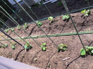 先日、友達にバジルの定植をお願いした 散水栓の工事も済み、いよいよ活動(゚Д゚) ここには4列、数にして360本が並ぶ ベリーの両脇には300本 今年は収穫も大変だ! 夫が家に居ないので 収穫は自由な時間に出来るのが 何より良いわ 庭のきゅうりが急に伸びた( ゚д゚ ) 通路の幅を確保しなかったので、狭いな! 朝からよその畑のあぜ草に除草剤をかける 休耕地、誰が面倒をみるんだろう? 草が嫌だから、高い薬を買って 他人の為に時間を掛けて除草をする それも、仕方が無い事なのかな? 除草剤が余ったので 庭の小さな草にかける 2021年5月29日