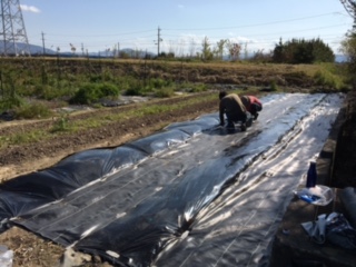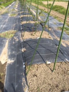 コロナ対策として お客さんが減る、午後から産直に納品 午後からの方がスムーズに終わりました そんな訳で 早朝から畑で1人、マルチ張り 久し振りの早朝の作業、風が寒いわ! 1時間掛かってマルチ完了です 取り合えず、一列終わった(゚Д゚) 早く起きたので まだまだ時間に余裕がある トマトの棚作り 今年も、さくらんぼトマトを植える 5月になったら忙しくなる 咲き始めたブラックベリーの花 花の開きが遅いなぁ〜 それに、今年は本数が激減 厳しい一年になりそうです