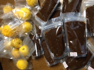 昨日、ダンボール1箱の、収穫したての ゆずが我が家に届きました 春に畑仕事を手伝ってくれたご夫婦 ご主人が1人収穫してくれたようです 大量です 毎年、今の時期は家味噌を使って ゆず味噌を作ります 今年の味噌は2年もの(^ω^) 新鮮な内にと午後からゆず味噌作り 右の数、40個を摩り下ろしても 少ししか取れません(´Д`) ゆず味噌レシピ 無添加の家味噌;1・5キロ 甜菜糖;730グラム 摩り下ろしゆず;280グラム みりん;350グラム 頂いたゆず3分の1でゆず味噌が16袋 出来ました イベントでお徳用にゆずを1個つけて 販売します 残りは、彼女の希望で 「ゆず茶」を作る事になりました これが、また、手間が掛かる( ゚д゚ ) せっかく頂いたので この際、少し商品にして販売致します 15袋が出来ました お湯を入れて飲んでみると 優しい味でホッとする 贅沢な時間!! 思った通りの味になって良かった お礼にゆず味噌とゆず茶を友人に届けます いつも有難うねぇ〜 2021年1月9日