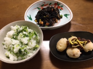 昨日仕上た橙ピール 朝まで待ったら、美味しくなった 少しの苦味は柑橘類の特徴で それが好きな人が多いみたいです(゚Д゚) また、舌にヘルペス! 一度、感染すると何度も繰り返す 帯状疱疹をしてから、体質が変わった 伊勢もコロナが急増してるので 2枚重ねのマスクをして 久し振りの買い物に出る 高齢者の感染は自分も含めて気をつけたい オリーブ揚げおかきを蒸らすアルミ缶 もう、1缶欲しいので 友人に頼んだら 中身が入ったまま届けてくれた(笑) 明日はおかきの餅つき 乾燥に何ヶ月もかかる”おかき” 気の長い仕事ですがイベントで大人気の 商品です、頑張ります。 舌が痛いので 今夜は精進料理 自家製ほうれんそうの白和え 里芋のゆず味噌かけ かぶの千枚漬け とろろ昆布 思ったより舌に沁みたわ(泣) 2021年1月19日
