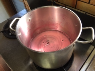 本日もお客さま 毎年、展示会の度にお越し頂く イベントでお世話になる友人 透かし模様の上着をお買い上げ頂きました 「にこぱん」さんのパンをお土産に! 折角だからお昼ご飯に コーヒーとパンをご馳走になりました 明日はフレンチトーストで 夫にも食べてもらいますね(^ω^) 家に飲み物が無いので 甜菜糖を使って、朝から ブラックベリージュースを炊く 濃縮ジュースを ソーダー割でお出ししました(^ω^) (牛乳割りにしたら、もっと美味しかった) ジュースの種を絞った後は さらしが赤紫になる(´∀`) 消毒を兼ねて 漂白剤を入れて真っ白に戻します 洗濯機で洗って、日光で消毒 ジュース一つ作るのも 何かと気を使います(T・T)