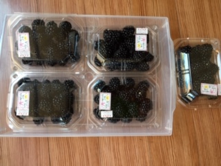 朝から産直に納品 いつもの商品の棚が無い、慌てる! 可笑しいなぁ〜 商品を移動したのか? 担当者の説明で 商品が完売して 空の棚を撤去されたのだった( ゚д゚ ) 本日納品、バジルペースト6瓶 全然足りませんね(T・T) お昼前 ガンガン日差しの下 ブラックベリーの収穫 パックに詰めて、また、産直 夫をディに出してからの収穫は 気温が上がる9時過ぎ 日焼けを気にしながら 首に冷えたタオルを巻き 熱中症に注意して頑張ろう! 2020年6月19日