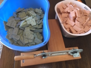大根を蒔く時期が遅くて イベントに間に合わないので 大きく育つまで 市販の大根を使って漬物にする 砂糖、酢、塩だけで漬ける 好評のきりんの漬物 ここに米麹を入れたら 美味しいだろうか? 味はべったら漬けを想像するが 新たに、やってみる価値があるだろうか 迷う! 今年、最後の切干大根 我が家は豚肉を入れて炊く 銀杏切りが最高に美味しい( ゚д゚ ) 販売は二の次で 自分家で食べたいので、毎年、干すが あっ!と言う間になくなる 外に干したり、中に入れたりと とっても手間がかかる割りには 産直ではお安い値段ですわ 北風が吹く頃には 干したいなぁ〜
