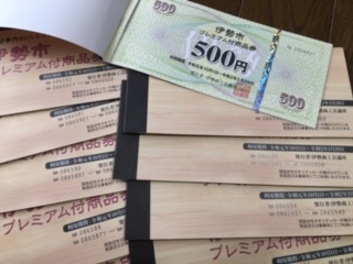 伊勢市からプレミアム付き商品券の 再申し込みの連絡が来た 1人、2万円の現金で2万5千円の商品券 夫婦で買うと4万円の現金で5万円 市役所で購入の手続きをして 通知が来たら郵便局に行って現金と 商品券を交換する(´∀`) こんな面倒な手続きをしてまで 商品券は要らないと思ってたのに 友人が 「アンタ、アホと違う?1万円やで・・ 買わな損するで!」 そうやな! ジャム、1万円売るの大変やもんな(苦笑) そんな訳で しぶしぶ行って来ました。 商品券10冊 早速、スーパーで使う おつりが出ません(T・T) スーパーのポイントが付かない(T・T) 2月末までの使用期間(T・T) やっぱり止めとけば良かった 面倒くさいわ。 2019年12月10日