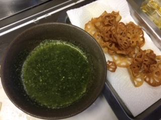ご注文のお餅つき 長時間の為、早朝から仕事をする 機械を最初に動かして置く お餅等で動かなくなってる事が多い! やっぱり動かない!(T・T) 長年使っていると 機械の癖も覚えてしまった 蒸気で付着物を柔らかくしてから 手で動かす 午後からフルーツゼリーの仕様を 変更する為、試作 まだ、まだ、進行中 100%満足をしないので・・・ (´∀`) 先日のイベントで お客さまから教わったバジルペーストの 新しい使い道 ペーストをお酢で伸ばして サラダにかけると美味しいらしいので 早速、実行です 思ったより、さっぱりと美味しい! もんごうイカのバター炒めと レンコンの素揚げに使ってみました。 2019年12月26日