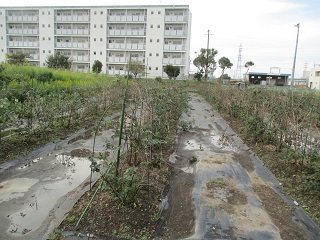 ご注文を頂いてる、お客さまの生地が 台風で遅れております 「生地の森」は浜松、ただ今、停電中です 宅急便が来ないので 畑の見回り・・ゲゲッ 我が家の大根は全滅です 覚悟はしてたので、もう1度種まき そしたら また、台風が来るって言うじゃない もう、勘弁してよね(怒) それと、知らずに人参、蒔いたのに(´Д`) 破けたハウスのドアのビニール 張っても張らなくても一緒なら もう、張らない(怒) ハウスの蕗の陰に三つ葉 濃緑の自然菜 3年目にして、やっと定着した 夕飯は海老かつ丼で頂きます 2018年9月30日