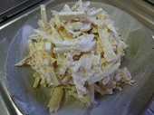 実の姉から電話「ヤーコン食べる」 ヤーコンって何や?(^_^;) 「サラダにしたら美味しいよ」 わざわざ、取りに行くの面倒くさいなぁ〜(^_^;) 乗り気の無い返事(笑) 「日の菜も有るけど・・・」 えっ!日の菜は欲しいなぁ〜(^_^;) ↓ ↓ 日の菜、ヤーコン、さつま芋 さつま芋とヤーコンの違い、解らない 取りあえず、”やろ”って言うから 有り難く貰って来た(^_^;) 几帳面な姉 日の菜の大、小も綺麗に分けてくれた さて、ヤーコンたる物 どんな味がするんだろう? ネットのレシピ通りにサラダ ヤーコン;皮をむいて短冊切 カニかま シーチキン マヨネーズ ヤーコンはカットしてから放置すると 色が悪くなるので マヨネーズで和えると色も変わらない どうせ、美味しくないだろうと思ったら おぉ〜何と シャキシャキと薄味の林檎を 食べているようで実に美味しい >^_^< 夫と2人 「何、これ、美味しい〜」 大量に作ったので昼も夜も食べました! 貰い物だけど、今度のイベントで 売っちゃいますかね (T_T) レシピを書かいたら売れるかな? 2017年1月16日